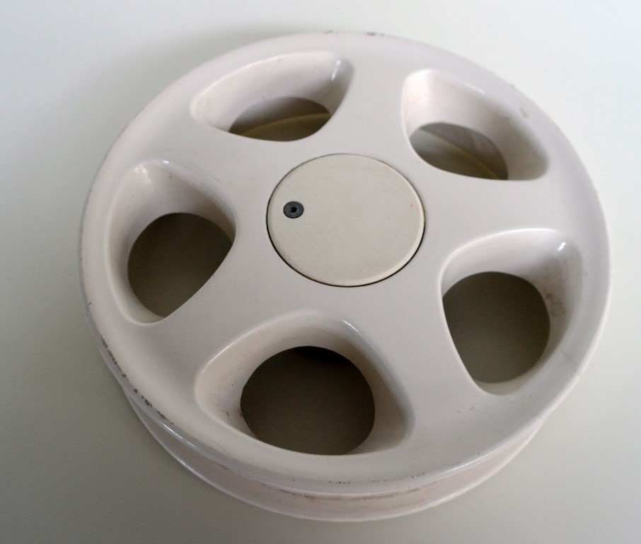Achterwiel 10” links compleet wit met remtrommel, Trophy